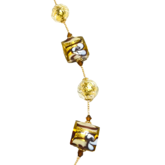 Murano Glass Statement Gold Necklace – Italian Twist and Cube Beads