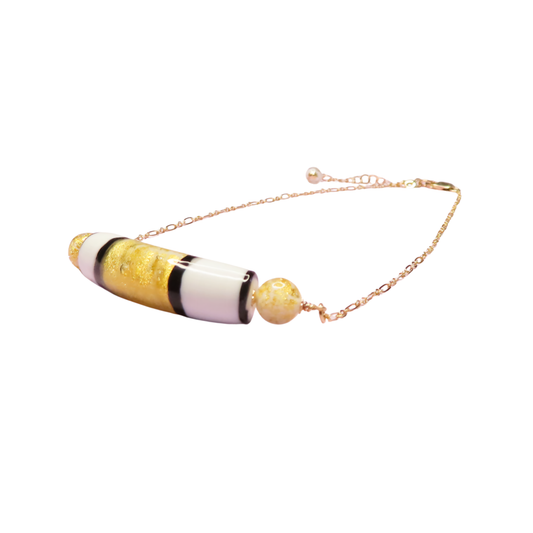 Murano Glass Statement Pendant – Italian Tube Bead with Gold Foil Gold Necklace