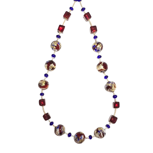 Murano Glass Statement Gold Necklace – Italian Twist and Cube Beads