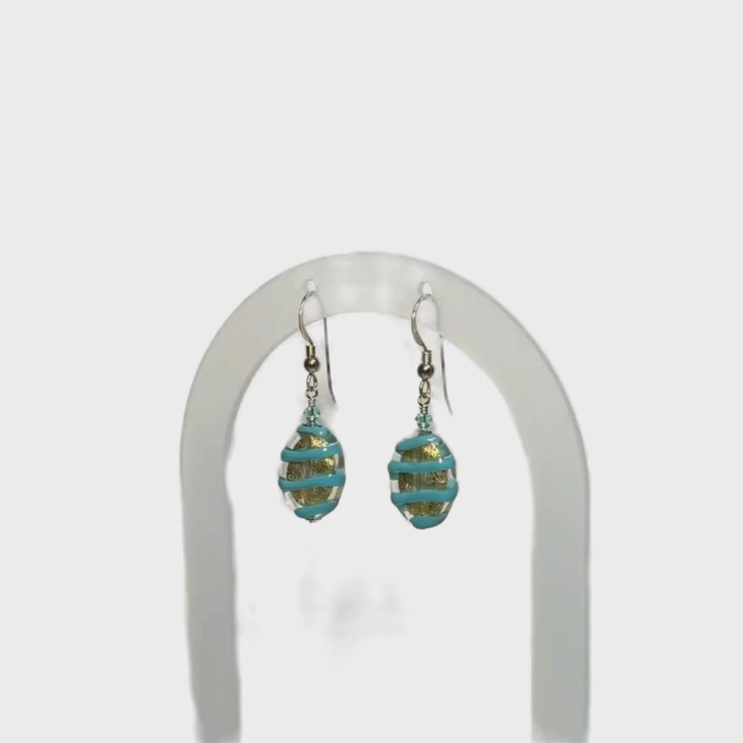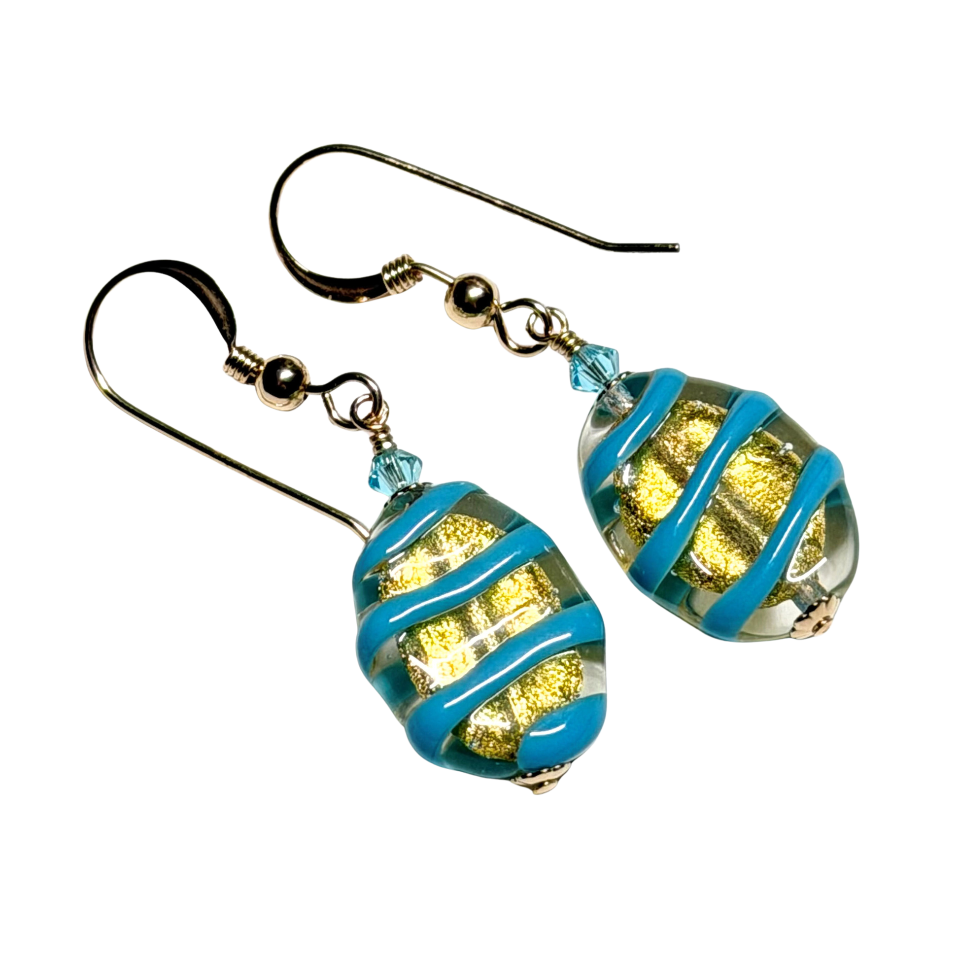 Italian Murano Glass Turquoise Oval Gold Earrings