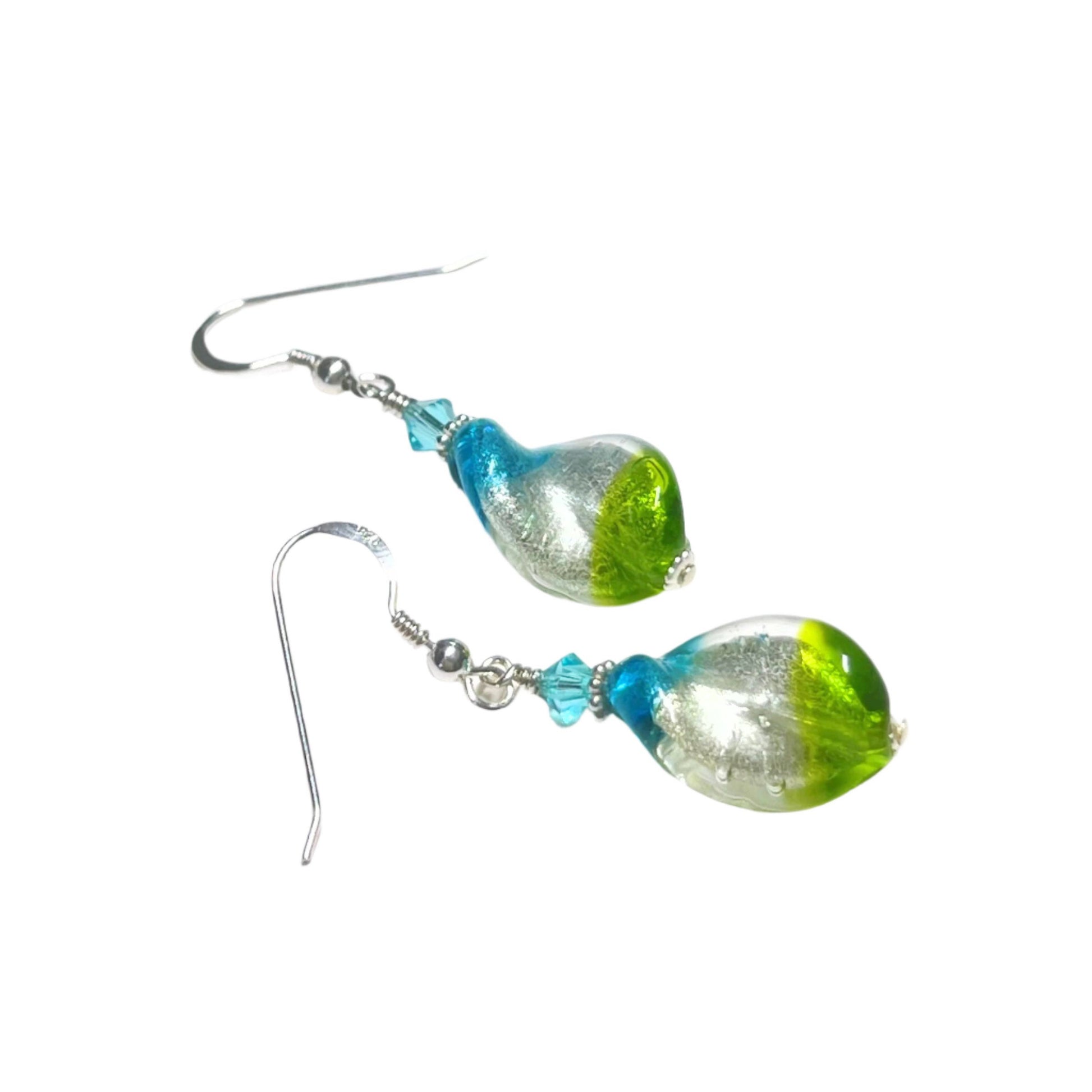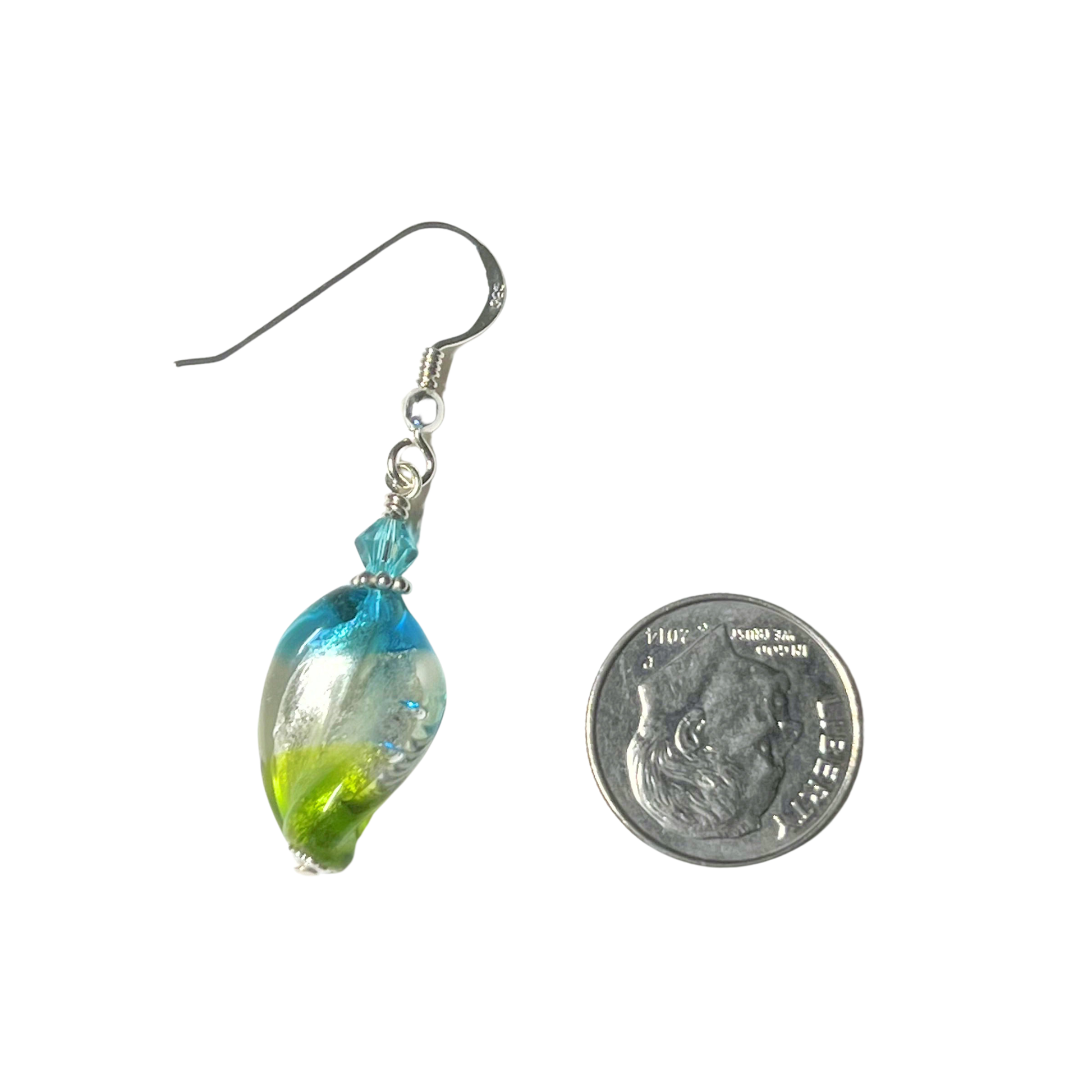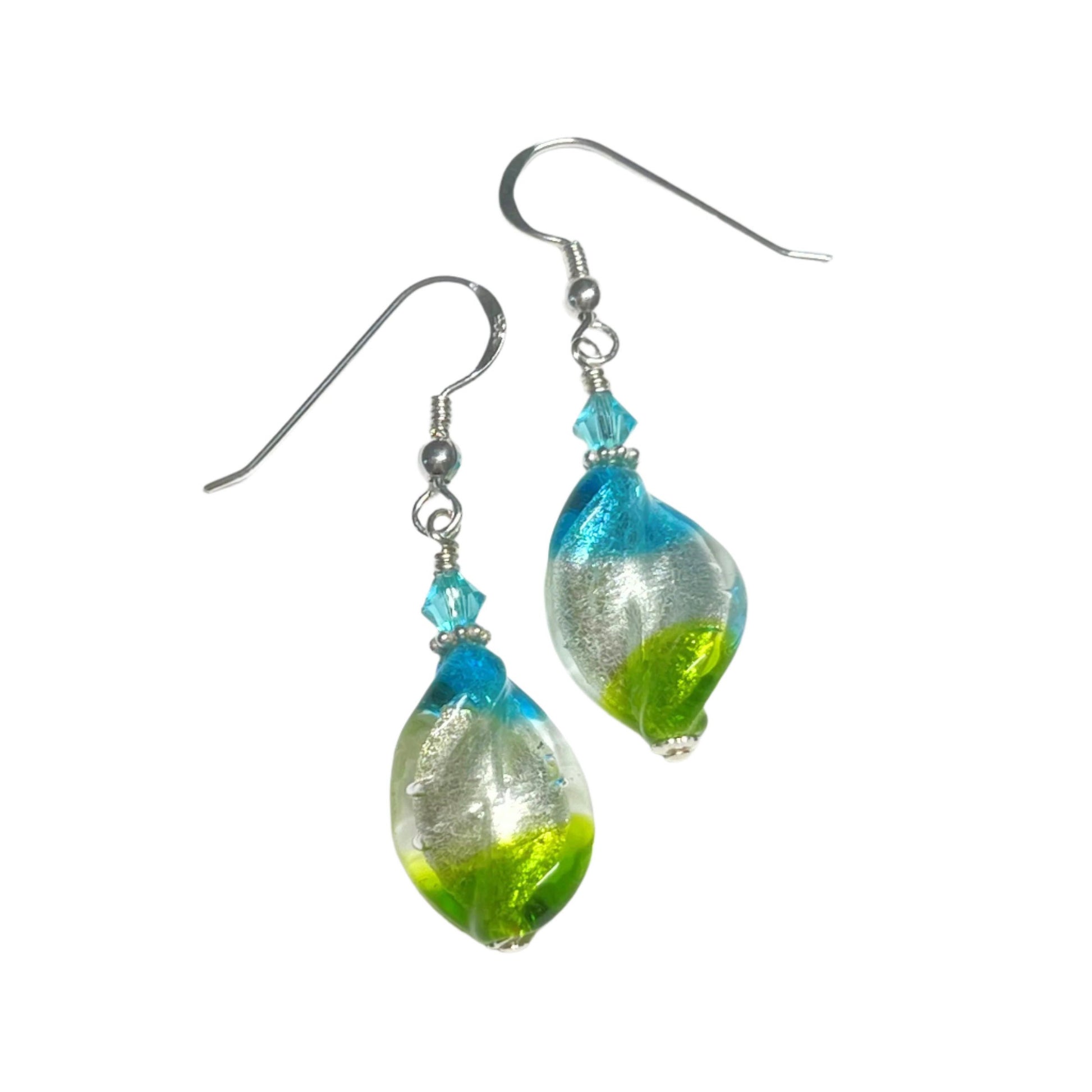 Murano Glass Colorful Aqua Green Twist Silver Earrings