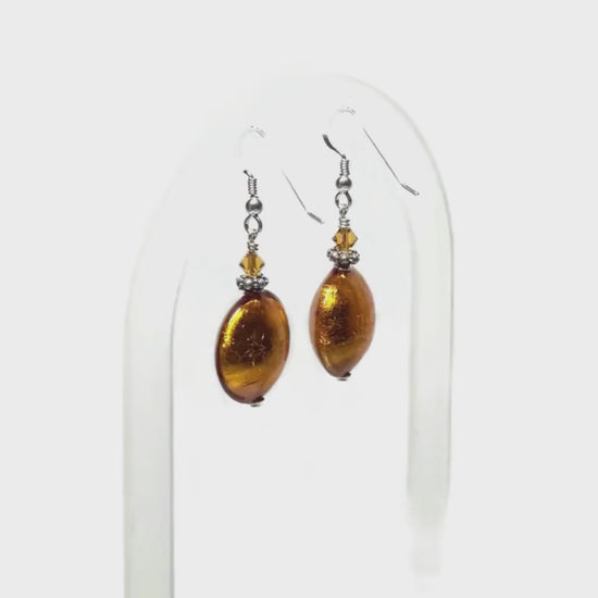 Murano Glass Topaz Disc Earrings – 18mm Sterling Silver Foil Beads