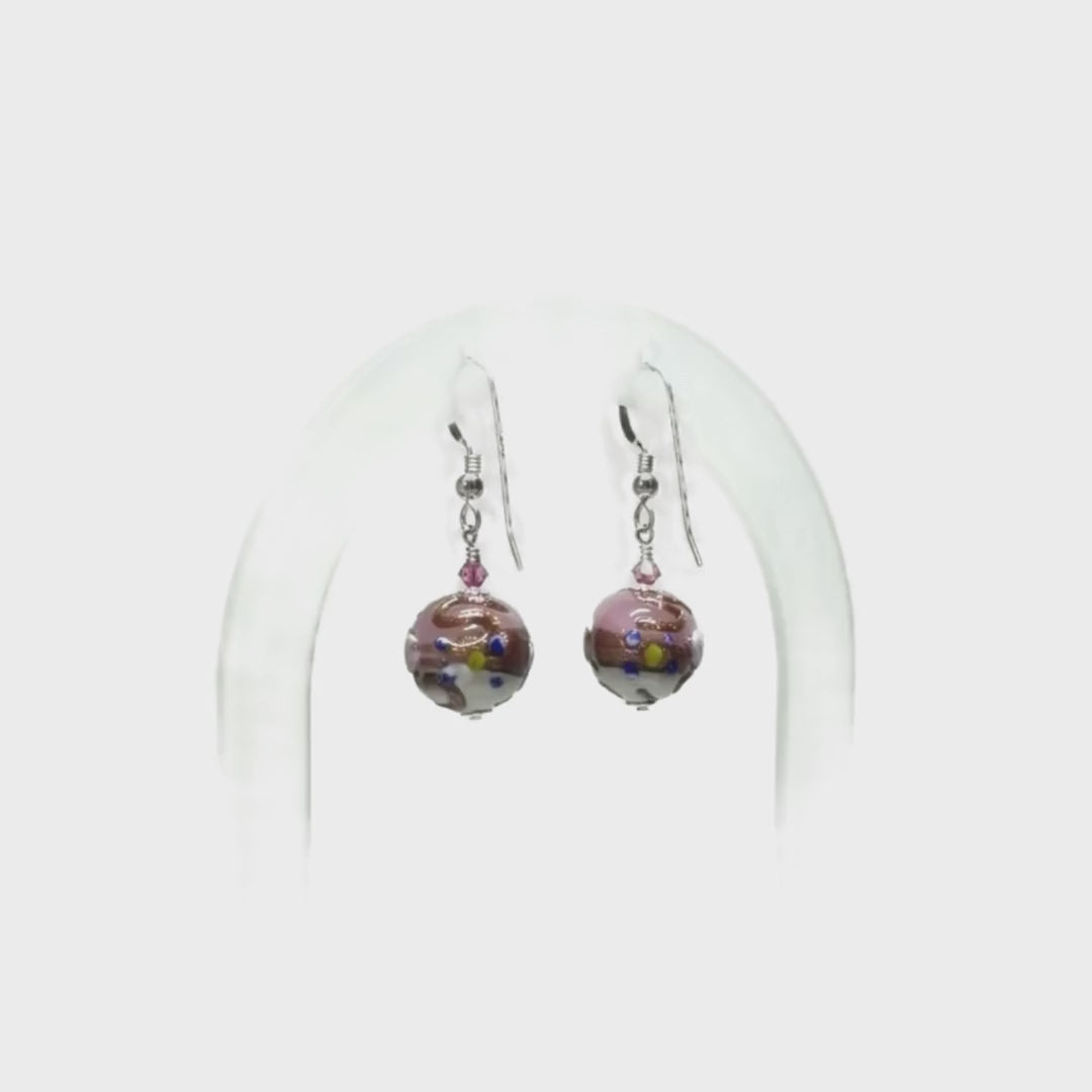Murano Glass Fiorato Pink White Wedding Cake Silver Earrings – Handmade Italian Elegance
