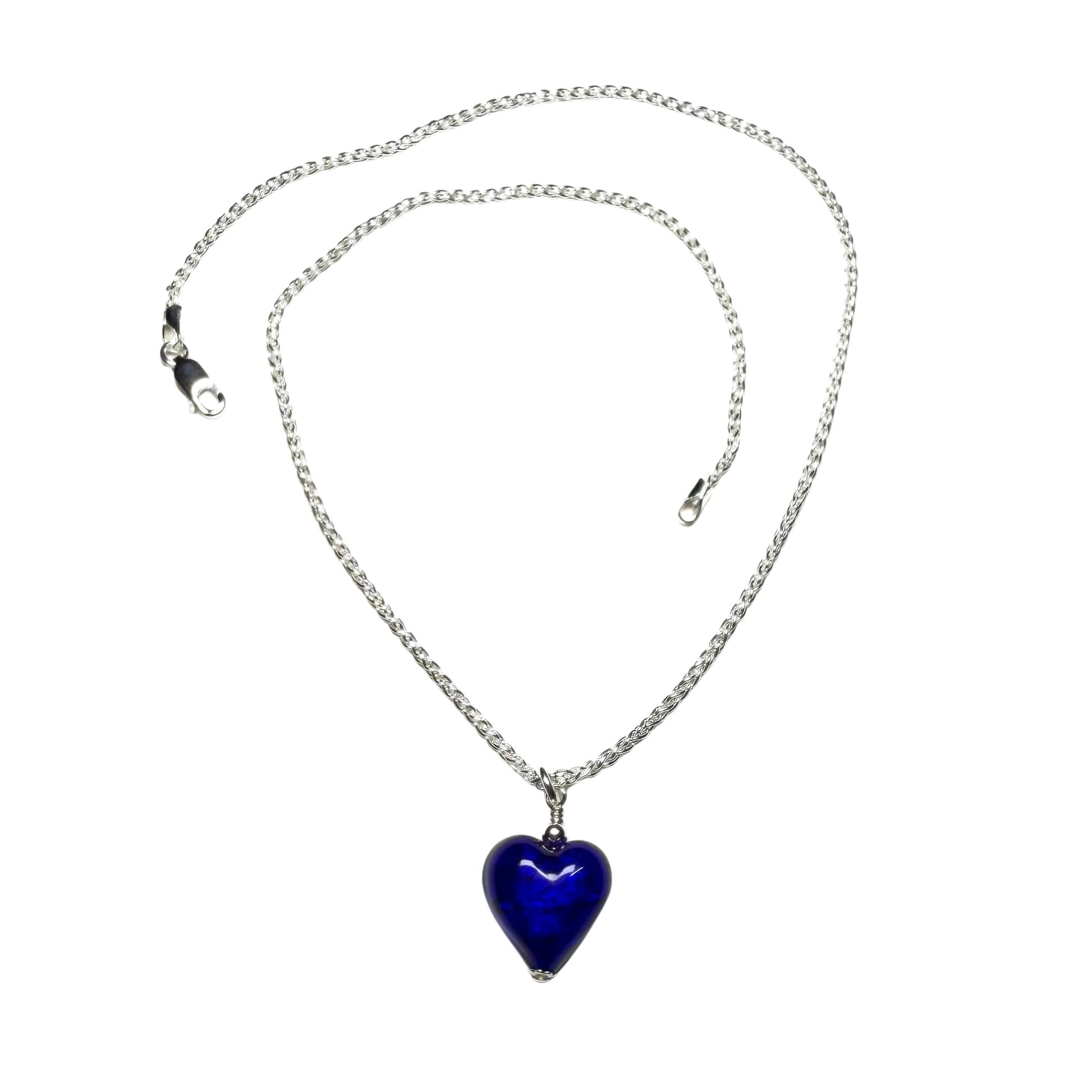 Murano Small Cobalt Blue Heart Pendant Silver Necklace